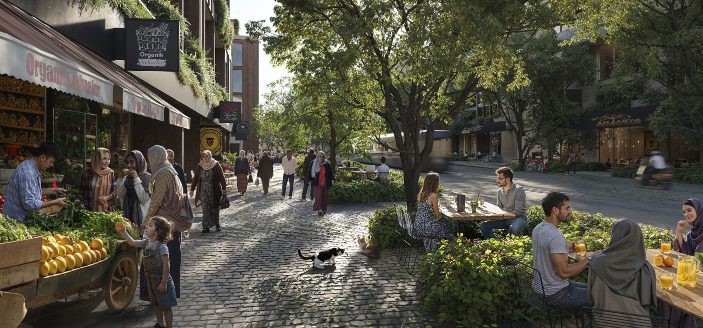 Yeni yol ağları büyük ölçüde mevcut kalıpları takip ediyor ve Cumhuriyet Meydanı’ndan uzanan ana yolları koruyor. Yürünebilirliği teşvik etmek için stratejik olarak ek bağlantılar eklenmiş. Bu iyileştirmelerin bir parçası olarak sokak bölümleri de dikkatle ayarlanmış. Cumhuriyet Meydanı’na özel bir önem verilerek yayalara ayrılmış ve yalnızca toplu taşımanın olacağı bir bölge olarak planlanmış.