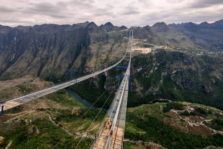 Liuzhi ve Anlong yerleşim yerlerini birbirine bağlayan bir otoyol projesinin parçası olarak Ocak 2022’de inşasına başlanan köprünün bu yıl trafiğe açılması bekleniyor. Topraklarının yüzde 92’si dağlar ve tepelerle kaplı olan Çin'in Guizhou eyaletinde, 1970’lerin sonlarından bu yana yaklaşık 30 bin köprü inşa edilmiş ve şu anda dünyanın en yüksek 100 köprüsünün neredeyse yarısına ev sahipliği yapıyor. Dağlar ve nehirler üzerinde çok sayıda köprünün bulunduğu, bir zamanlar izole edilmiş, ücra dağlık alanlar büyük dönüşüme uğramış. Eyaletteki otoyolların toplam uzunluğu 9 bin km’yi, toplam yol mesafesi ise 220 bin km’yi aşmış.